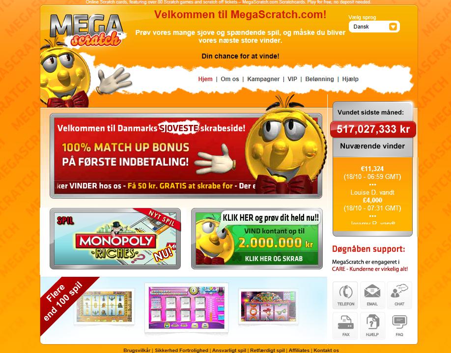 Det er en god hjemmeside og nem for alle at overskue. Online casino spil, som Megascratch er vigtigt at de er nemme for dig som spiller. Så du kan finde de spilleautomater og slotmaskiner, som du ønsker at spille. Jeg har vedlagt et billede af Megascratchs hjemmeside.